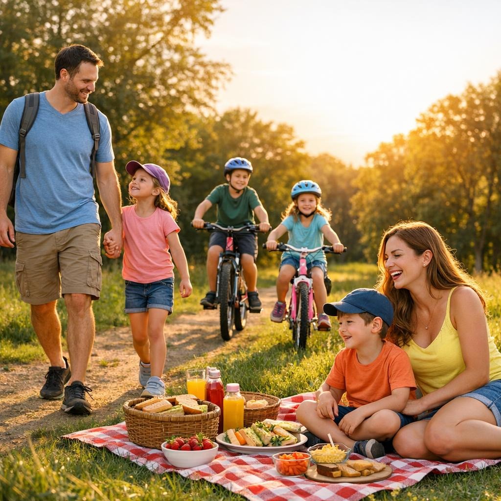 | ✅ Gemeinsame Zeit bewusst planen und Freiräume schaffen | 🌿 Regelmäßige Outdoor-Aktivitäten für Bewegung und Naturerlebnis |